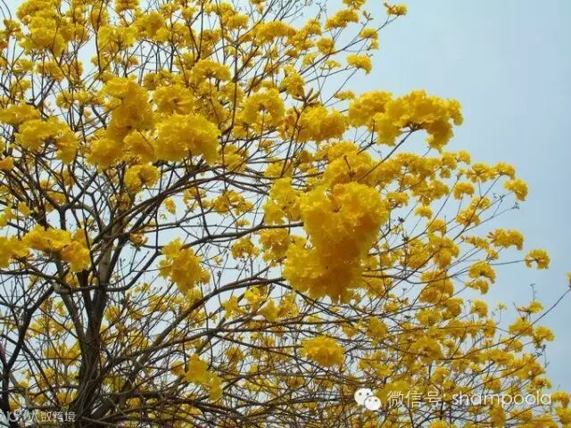 ❀黄花风铃木❀一种会随着四季变化而更换风貌的树。春天枝条叶疏,清明节前后会开漂亮的黄花;夏天长叶结果荚;秋天枝叶繁盛,一片绿油油的景象;冬天枯枝落叶,呈现出凄凉之美,这就是黄花风铃木在春、夏、秋、冬所展现出不同的独特风味。