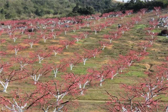 黄坭塘的这处桃花林是隐藏在深山内的一片鹰嘴桃林,树龄已有8年,是连州最早的鹰嘴桃种植地,漫山遍野都是鹰嘴桃樱红的色彩,桃树在园林工人精心培育下,树形极美,是连州最佳鹰嘴桃观赏地之一。