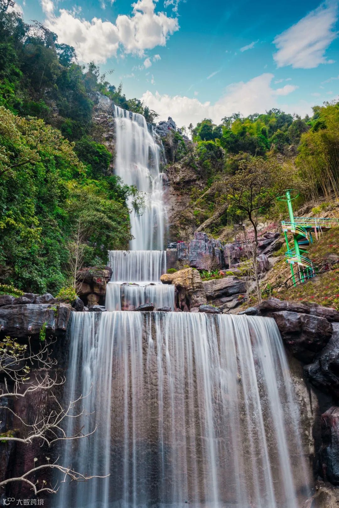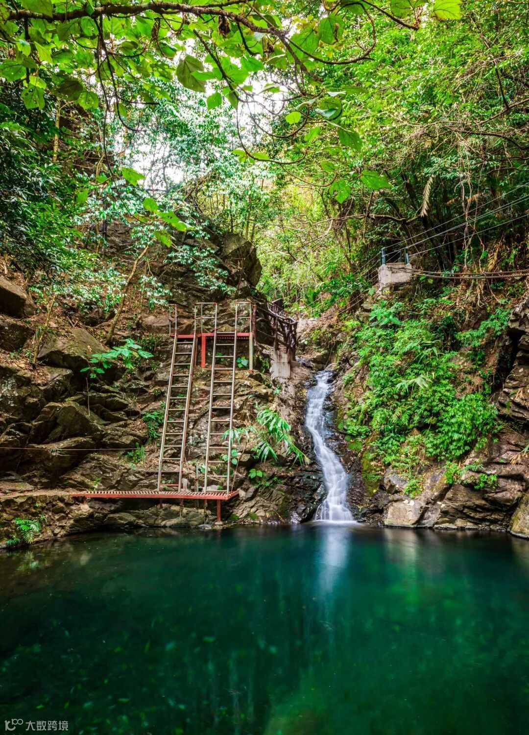 沿着泉水的潺潺水声进入千谷溪丛林探险,两岸青山相映,溪水荡漾着笑涡,陡峭的岩壁旁山幽鸟鸣、百雀飞舞。