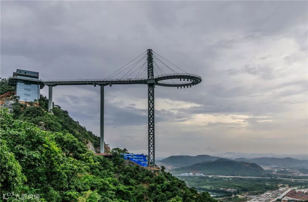 天门悬廊由三个钢混结构的巨型立柱支撑