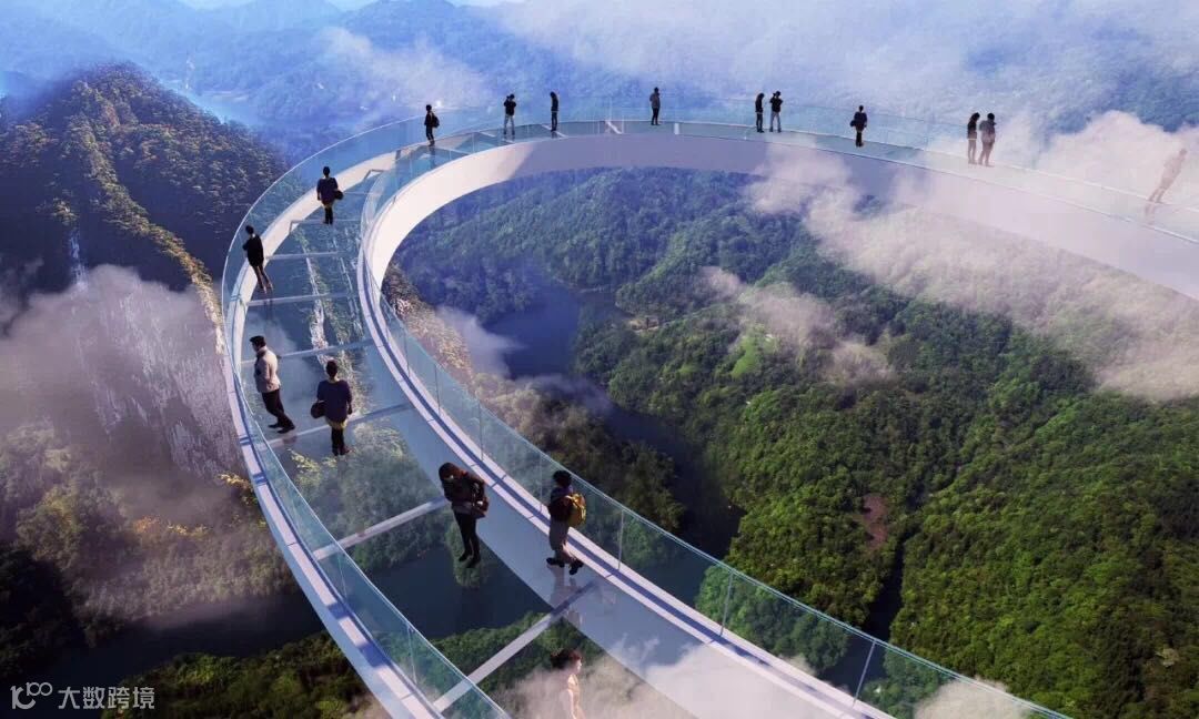 天门玻璃悬廊建设在峡谷的险峻山体之上