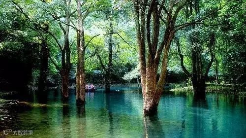▲一片恬静的透明绿池子——卧龙潭
