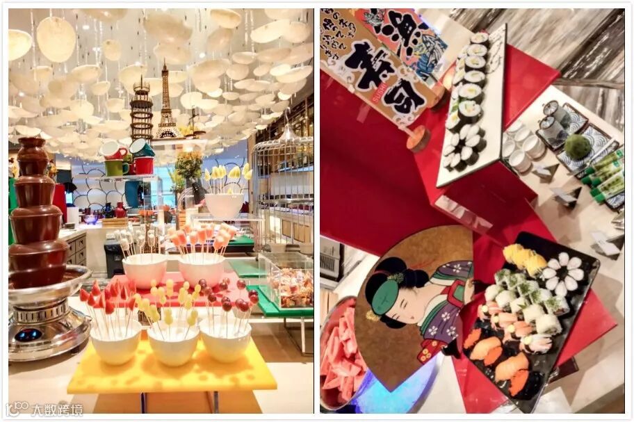 有着法式名字的餐厅却“海味”十足,蓝色波浪背景点缀贝壳吊坠,美轮美奂!这里汇聚全球特色美食,早晚两餐自助供应世界各地菜肴。