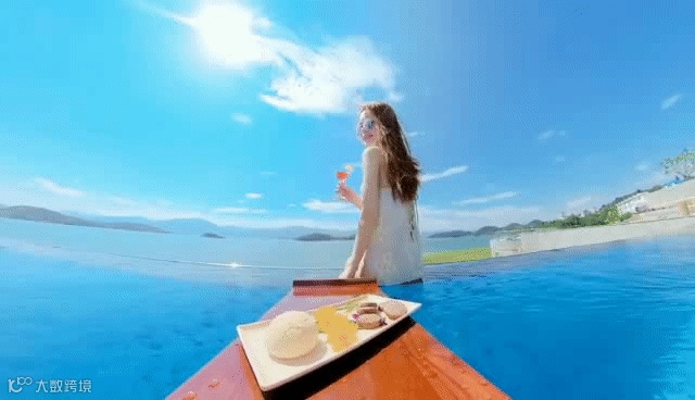 云雾渐散,520米海拔之上的悬崖无边温泉,与蓝天白云融为一体形成水天一色。