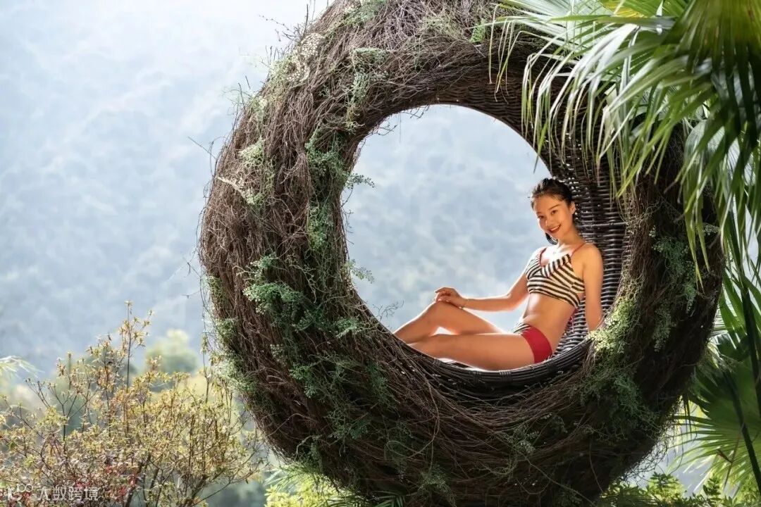 巴厘岛风情鸟巢依山而建于半山间,坐在鸟巢,眼前是一个秘境般的莽山森林。