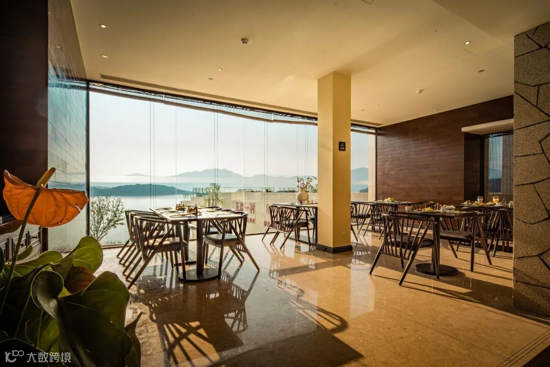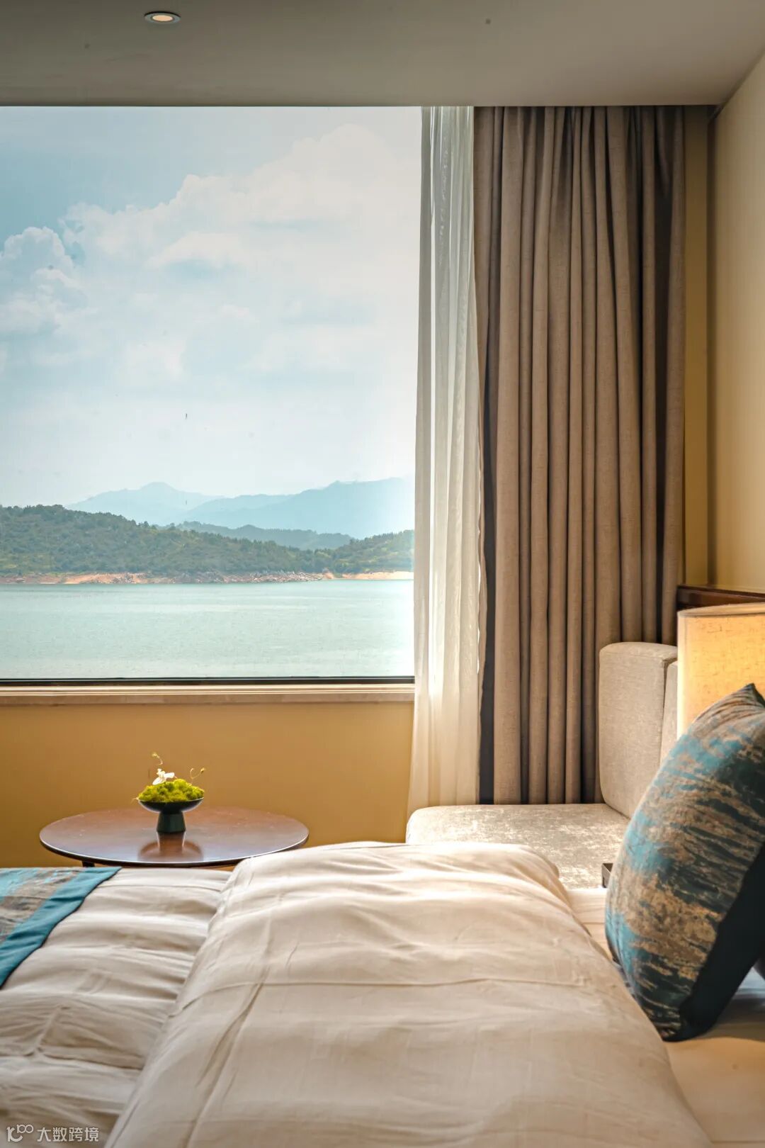 放下行李,往房间落地窗外望去,便能与山水撞个满怀。湛蓝的湖水和几座连绵的岛屿,所有的糟糕情绪与疲惫,都能被缓解,安心享受片刻的宁静与自在。