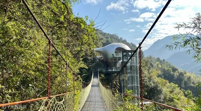 近看山峦起伏,远眺满目苍翠,听鸟语争鸣,闻花香四溢。走在桥上摇摇晃晃,体验惊险刺激的浪漫