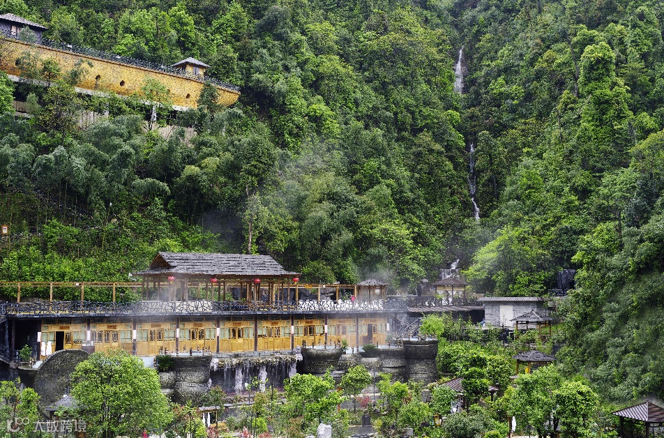 温泉区依山而建,60余个大小泉池井然有序错落在半山间,有高山偏硅酸原汤温泉,也有百花泉、百草泉、红酒泉等不同功效的特色温泉。