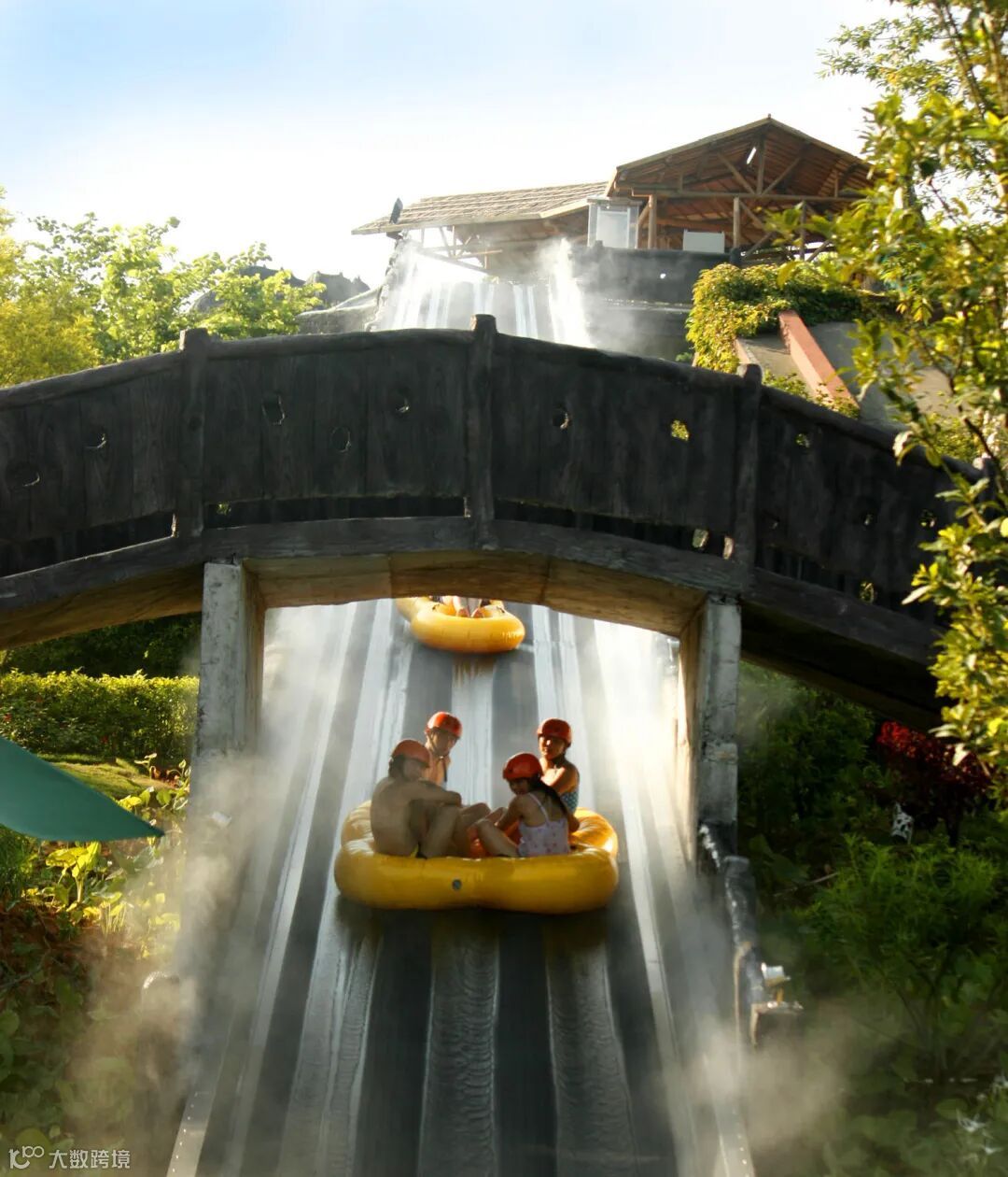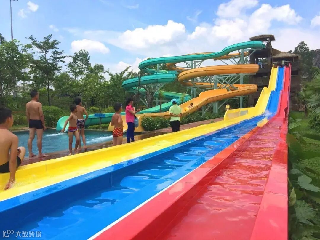 其中3组竞赛滑梯、2组旋转滑梯