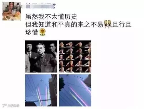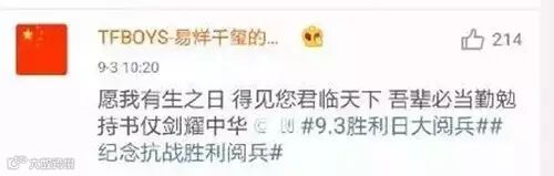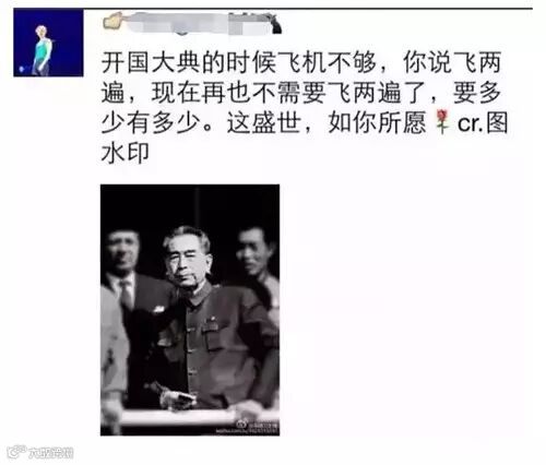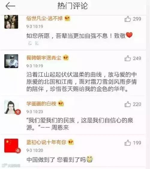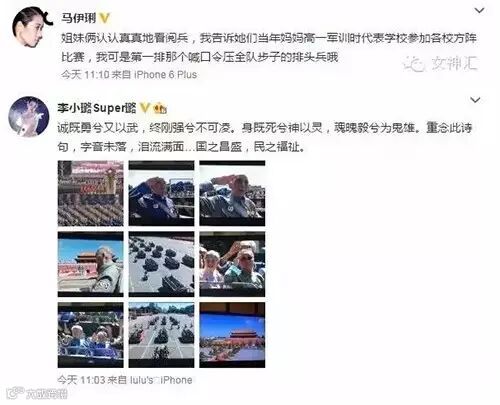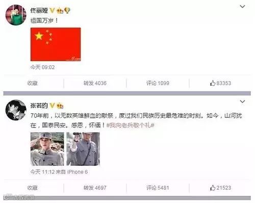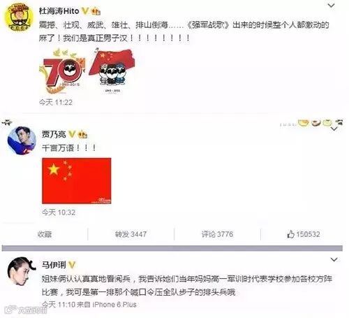 今天没有明星、没有普通人,只有一群爱国的人!今天所有人都为祖国的胜利骄傲!