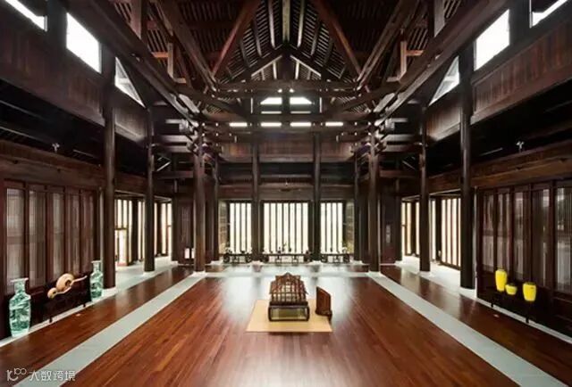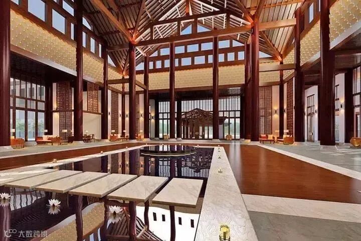 全榫卯结构打造的酒店大堂