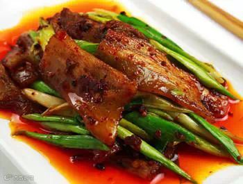 原料:牛肉500g,大葱一根,蒜少许。