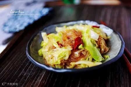 1.卷心菜洗净切丝、粉丝泡软;