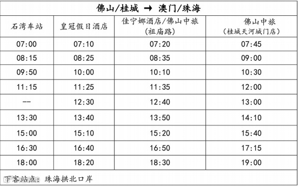 佛山/桂城 ⇔澳门/珠海 单程票