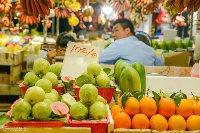 海景食坊的另一扇门,直通水产中心隔壁的水果和土特产市场。这里又是一番色彩缤纷的模样。