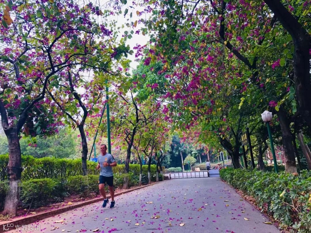 花树开花的时节,湖边色彩分外明媚,往来晨练散步的游客愈发多了起来。
