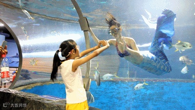在海洋剧场,可以和“美人鱼”来一次亲密接触!