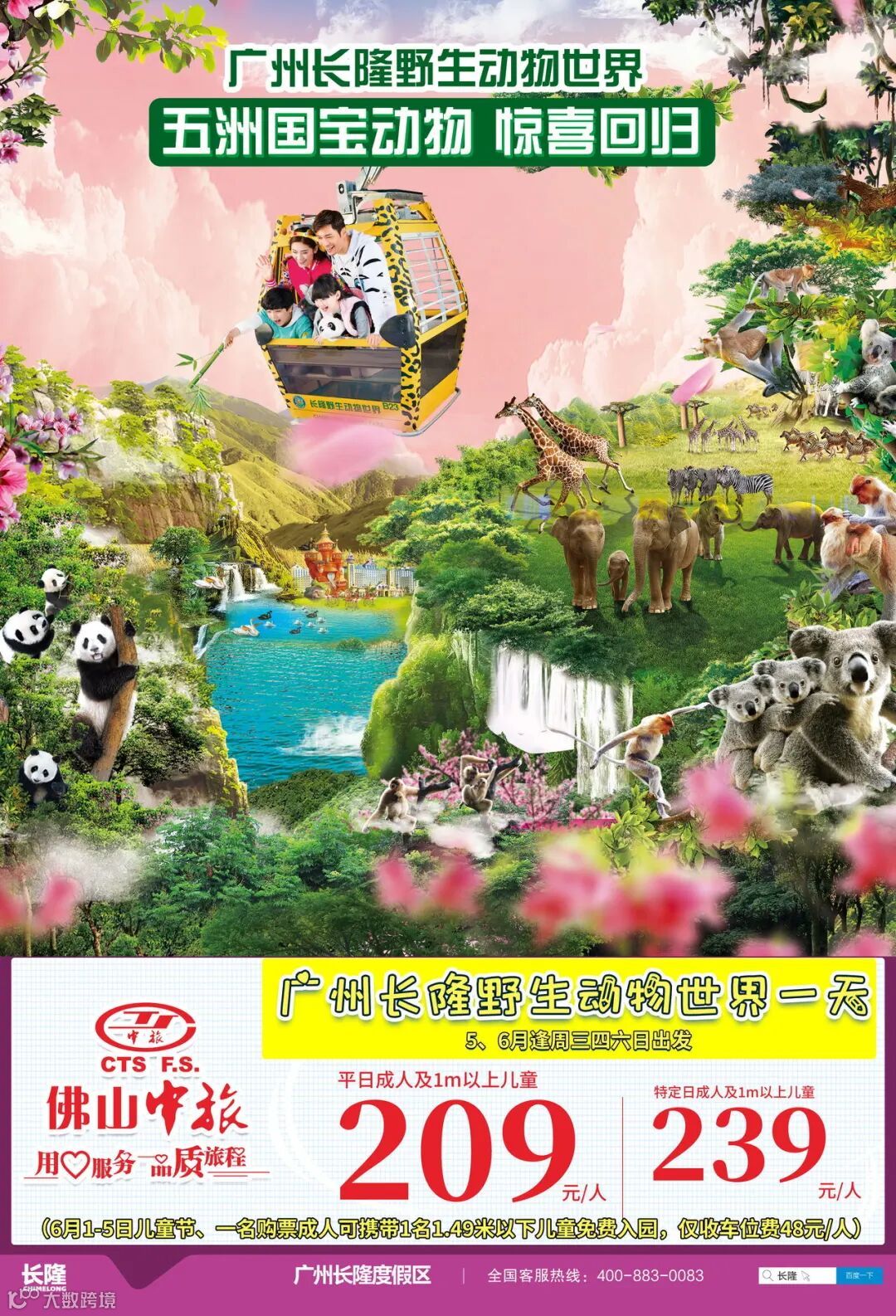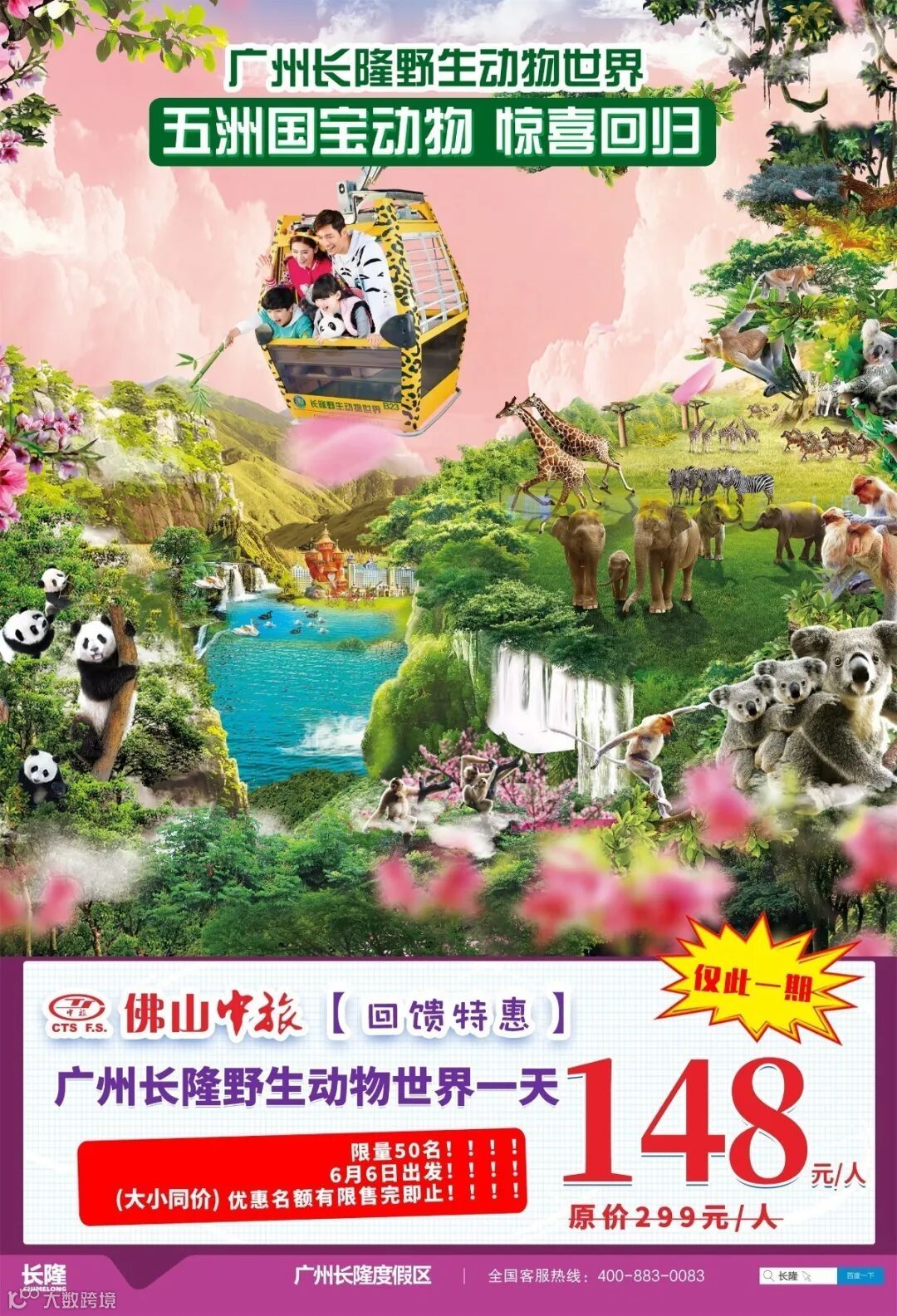 【长隆野生动物世界一天游148元/人】