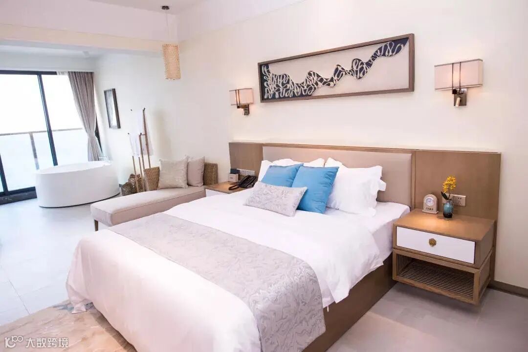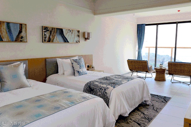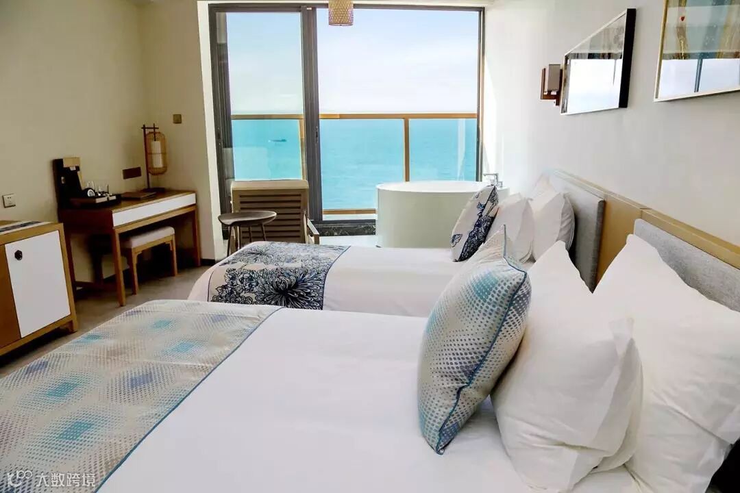 990间全海景的奢丽客房,拥有临海大落地窗,可俯瞰北洛湾风景区。精致小木桌、阳光躺椅,精美的现代中式装饰给您尊贵的度假享受。