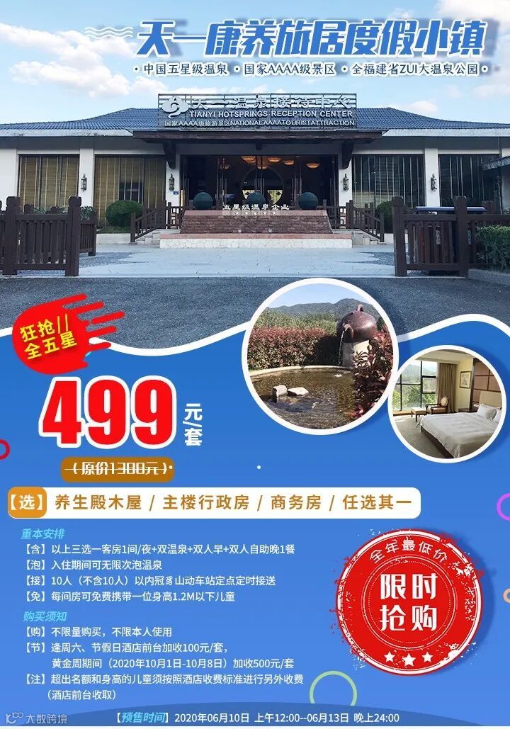 【节】逢周六、节假日酒店前台加收100元/套,黄金周期间(2020年10月1日-10月8日)加收500元/套