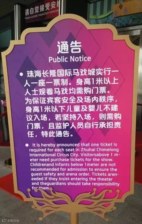 1、身高1米以下儿童及婴儿不建议观看马戏,若坚持入场,则需购买门票,且监护人自行承担责任。