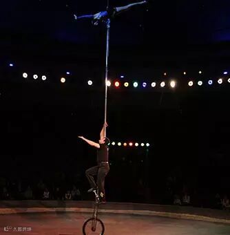 双人顶杆,是杂技中的传统节目,但来自捷克的组合,在舞台上演艺了一台别具匠心的顶杆表演,男演员并不是站立在地面上,而是脚踩独轮车,头顶高杆上女演员,并抛耍5根杰克棒,女演员在高杆上倒立旋转,男演员还不时坐下并360°转身后再次站起来,场面险象环生,跌宕起伏。