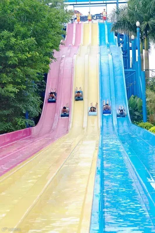共有2种新颖的水滑道设施供您选择,然后随着水流迅速旋转下滑,在巨大的惯性下,瞬间天旋地转,感受欢笑与刺激。