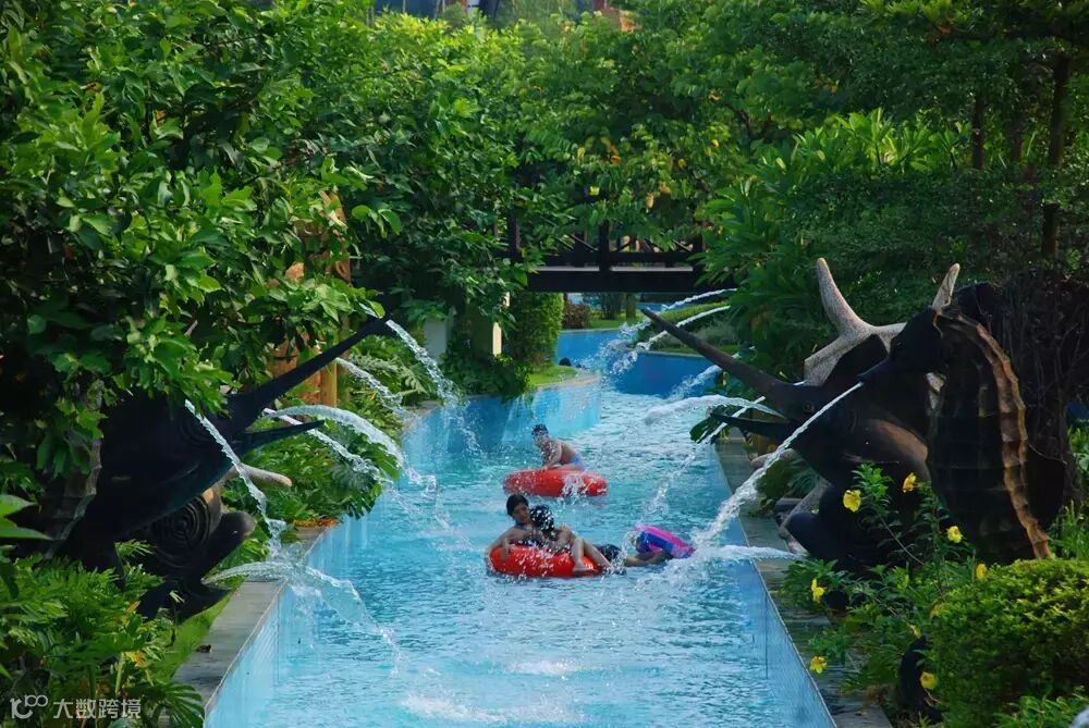 丛林漂流总长度570米,游客躺在特别设计的泳圈上沿河漂流,放松自己,静静地享受漂流河带来的安详与宁静。此外,在漂流河的河沿提供了独特的水景供游客欣赏及体验,会是享受休闲时光的最佳选择。