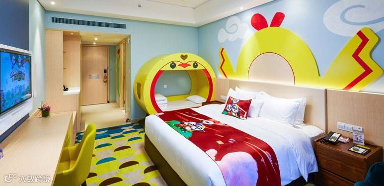 童心十足的长隆熊猫酒店,拥有1500间“萌帅酷”主题客房,让您与孩子穿越到童话中。其中王子家庭房,专为家庭住客设计,聪明萌趣的哪鹅小床,让孩子在童话中甜甜入睡。
