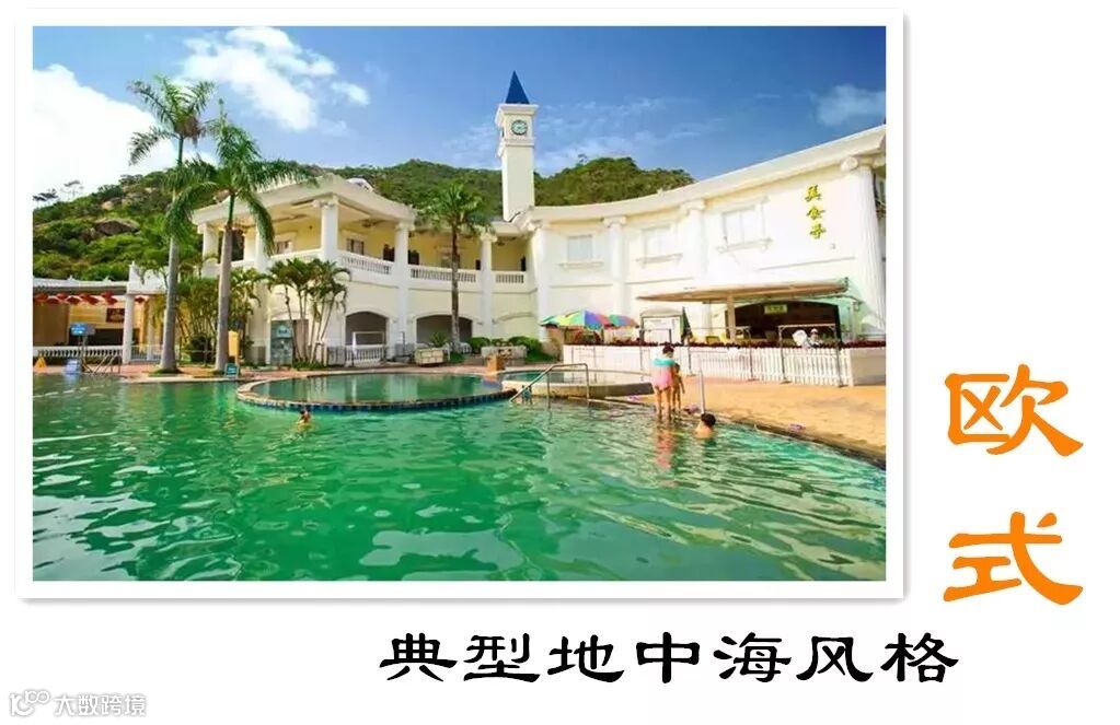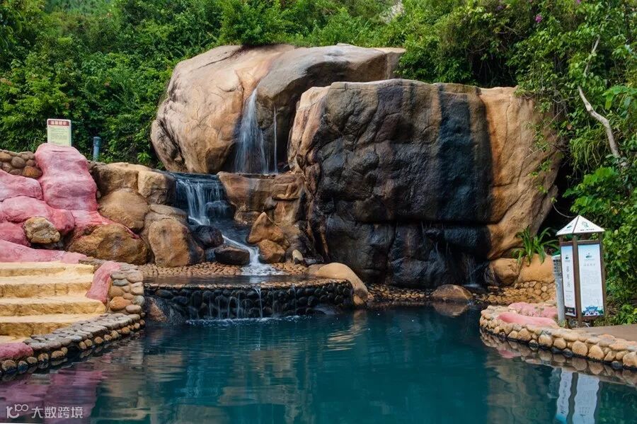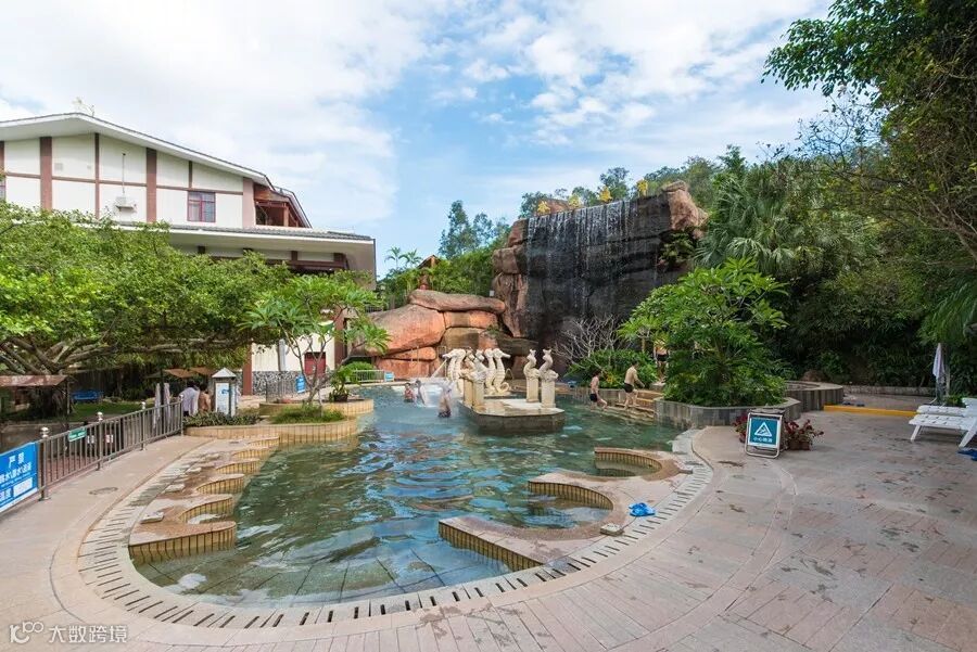 除了有不同的温泉主题区,同时拥有两种不同类型的温泉:海洋温泉(咸泉),氡温泉(淡泉)。古兜温泉水体澄明清澈,谷内飞瀑流泉,水木清华,碧翠嫣然。