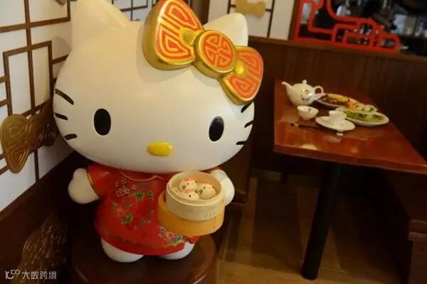 放大版的Hello Kitty点心妹,手中拿住一笼包,头上别着金红如意蝴蝶结,可爱得让人心软,忠粉必定抢住合照。Hello Kitty为您上菜喽~