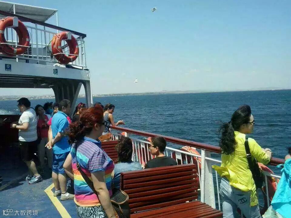 乘汽车渡轮横越达达尼海峡,这是连接玛尔玛垃海及爱琴海的天然海道,昨晚住欧洲,过海后今晚住亚洲,就住宿在爱琴海海边,随团客人个个都异口同声说,迷人爱琴海,浪漫爱琴海,情定爱琴海!