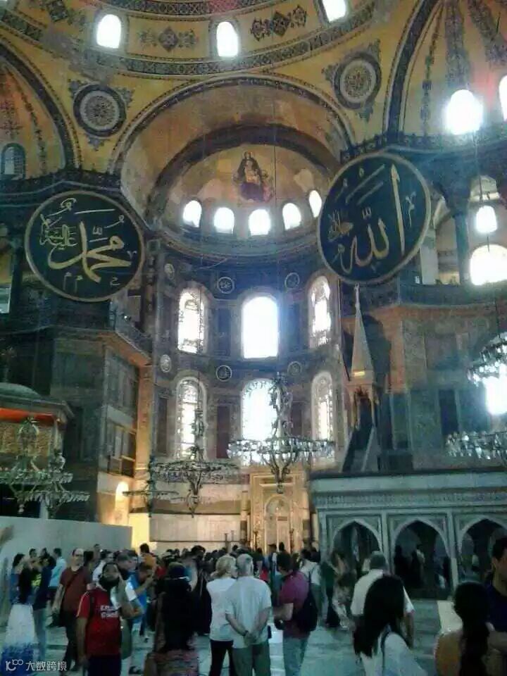 蓝色清真寺,独一无二的六枝宣礼塔尖,代表着它在回教世界内崇高的地位。以及宏伟的圣索菲亚大教堂---世界笫三大教堂。