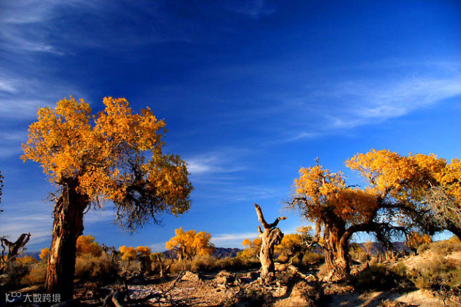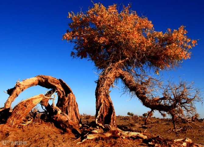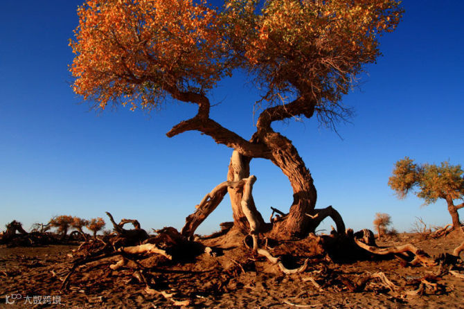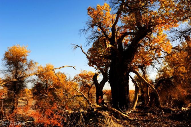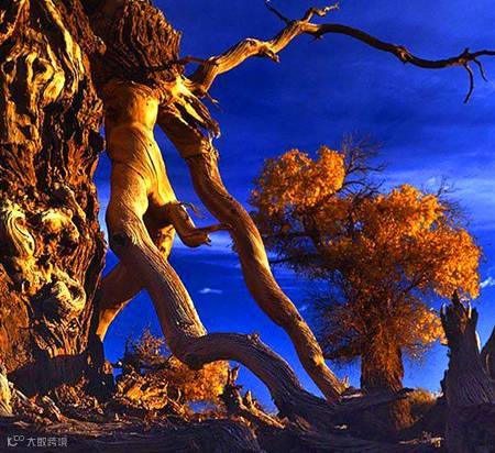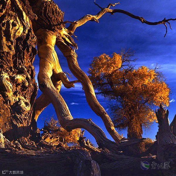 陶来林的胡杨,它的美让你终生难忘。耀眼的霓虹、璀璨的繁星在它面前都暗淡了。湛蓝的天空下、荒芜的大漠中,浪漫在自然的美景中绽放,沉浸其中,只有幸福知晓您的行踪。
