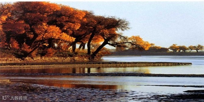 这里是多姿多彩、至真至纯的额济纳金胡杨,这里是理想胡杨林倒影的拍摄地。日出时分的秋水胡杨在晨光熹微中等待日出。湖水静静的流淌着,两岸的胡杨似乎在沉沉的睡梦中。这里的胡杨和静默的湖水相互交融,成为最美的胡杨林倒影景观。