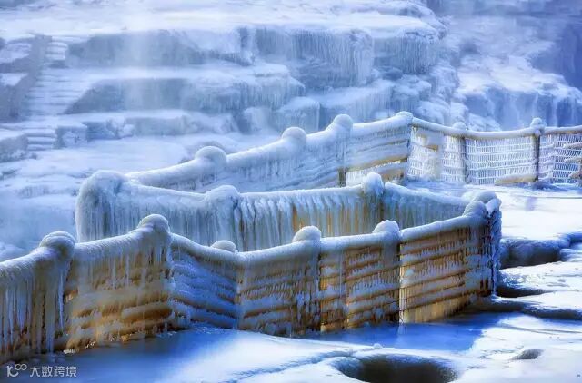 冬日里的壶口是冰的世界,上演绝色奇观」
