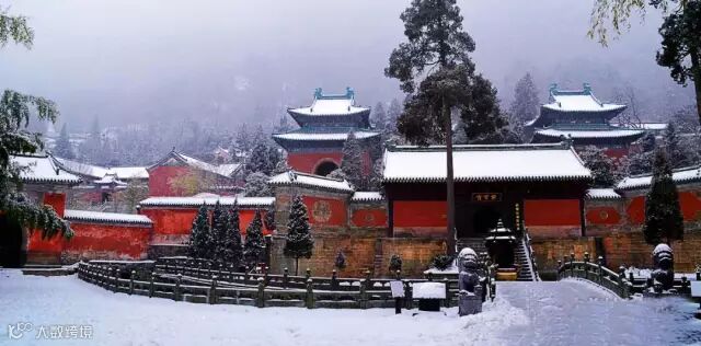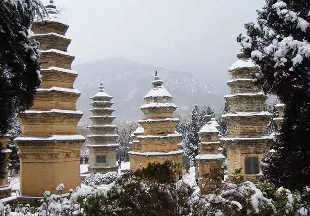 巍然屹立在嵩山大地上的历史古建筑群,在这一片童话般的冰雪世界里,显得美不胜收,姿态万千。