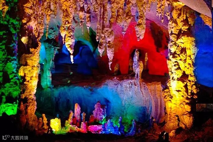 神秘瑰丽的地下银河,这座巨型的天然石灰岩洞,因其岩洞口宽大而得名--大口岩,面积约45000平方米,共分三层,其中地下河全长约1500米,是目前全国最长、所发现最有价值的地下石林,团友由上层进入,步行浏览上层"南天门"、"鹊桥"、"仙人神田"等美景,后从下层乘船穿洞而返,船上观赏"小铁达尼号"、"莲花峡""香蕉峡"等形态各异的钟乳石景象,沿河两岸布满石笋、石柱、石花、石幔景态盛万千,如进入地下石刻艺术宫殿;壮丽的景观和独特的组合,堪称岭南一绝。