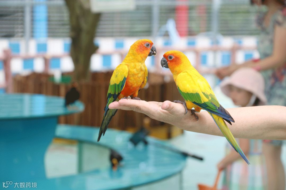 还有动物谷里面的七彩鹦鹉,特别的亲人,也可以说是贪吃,哈哈哈哈,只要你手上拿着饲料就能把它们吸引过来了,旁边的八哥还会说恭喜发财哦。