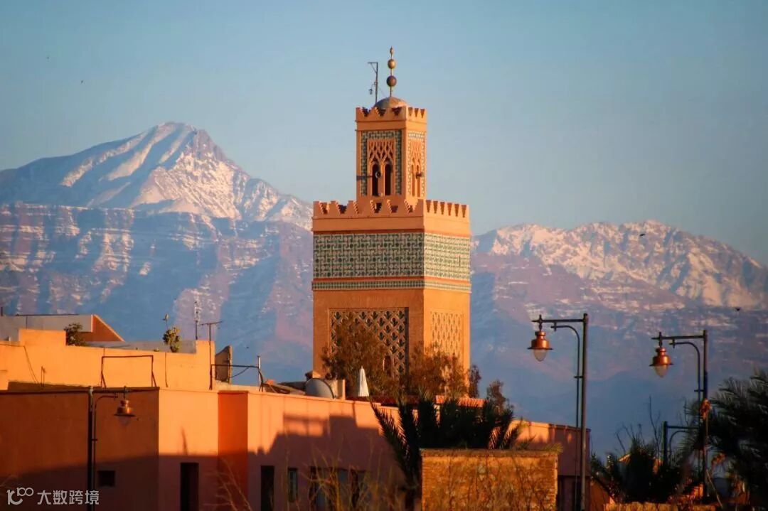 马拉喀什位于摩洛哥西南部,坐落在贯穿摩洛哥的阿特拉斯山脚下,有“南方的珍珠”之称。