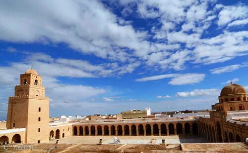 凯鲁万城内寺庙星罗棋布,阿拉伯人在这里建立的第一个清真寺就是雄伟壮观的奥克巴清真寺。它的地位在圣城可谓举世无双,至今都是阿拉伯建筑、文化和艺术的经典代表作。