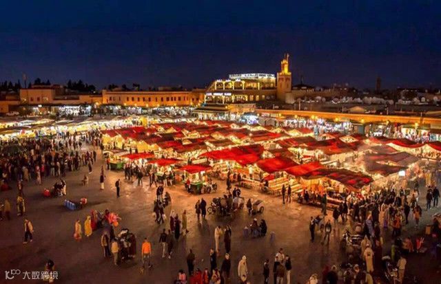 这里有整个非洲最繁忙的广场,炎热、尘土和尼砖堡垒式马拉喀什成为独一无二的城市。