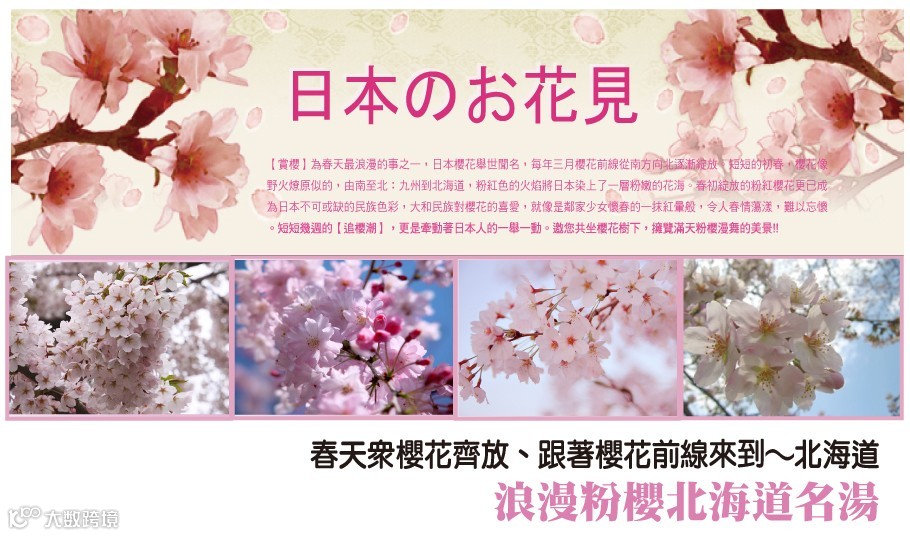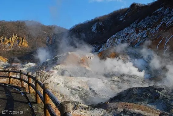 (适逢樱花时节,游人可以欣赏到浪漫樱花)地狱谷是位日本北海道登别市的一个火山口遗迹,被视为登别的象征。它邻近洞爷湖,大约在一万年前形成,是火山爆发后,由融岩所形成的一个奇形诡异的谷地,灰白和褐色的岩层加上许多地热自地底喷出,形成特殊的火山地形景观。地狱谷至今仍有直径大约450米的地方在喷冒着白烟。