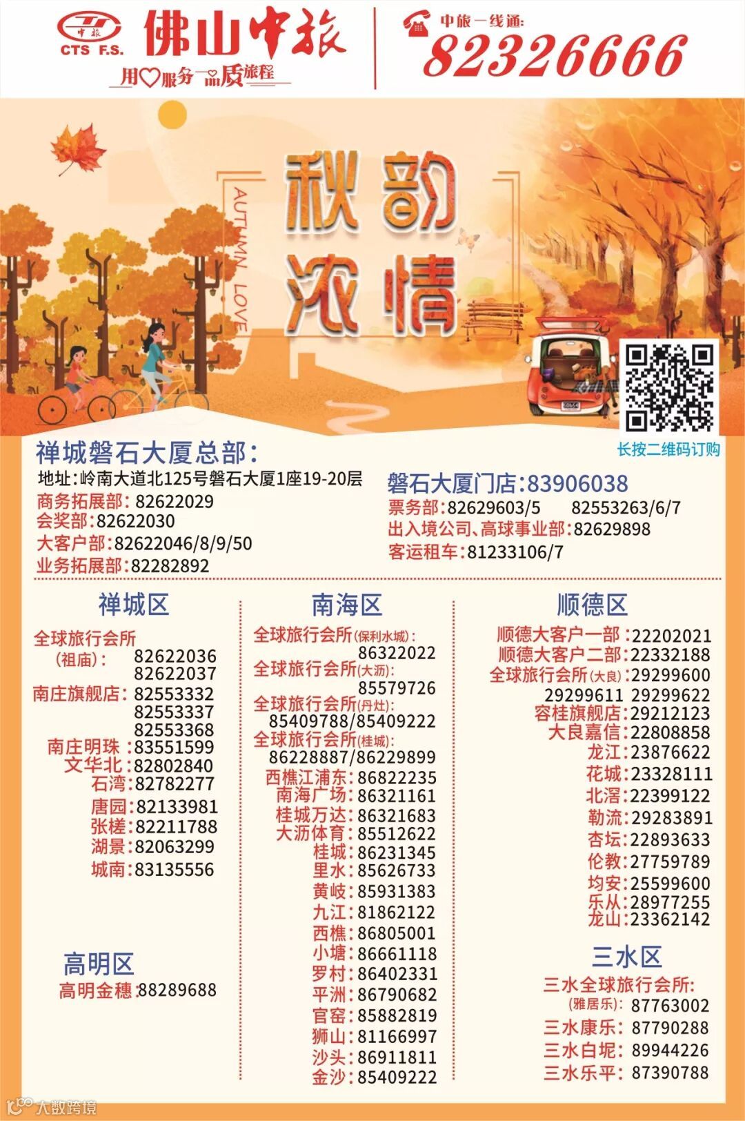 咨询或预定可联系您身边的佛山中旅营业部哦