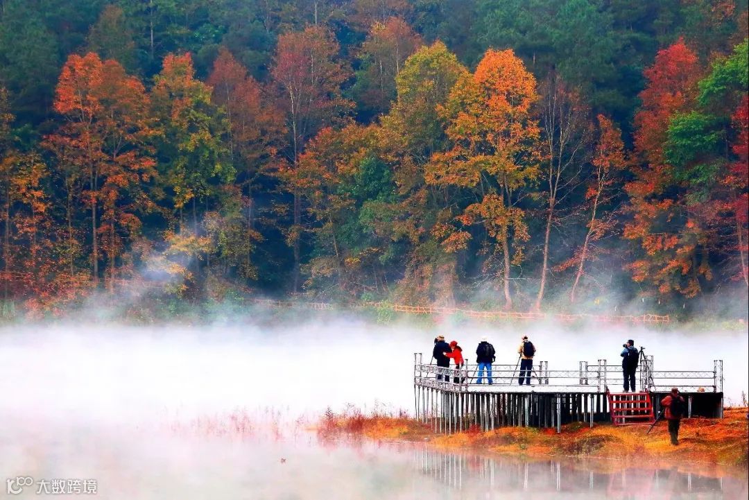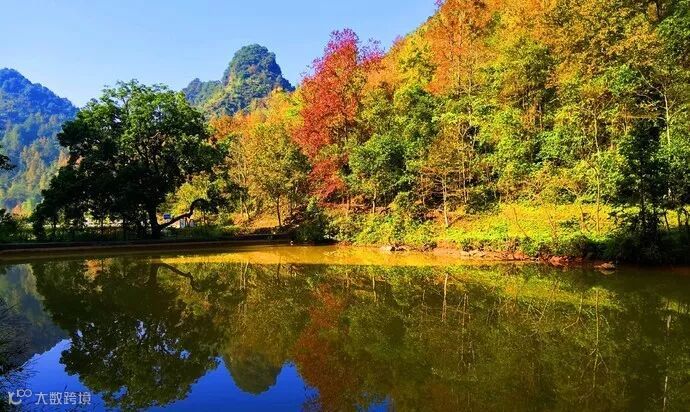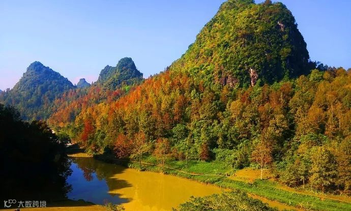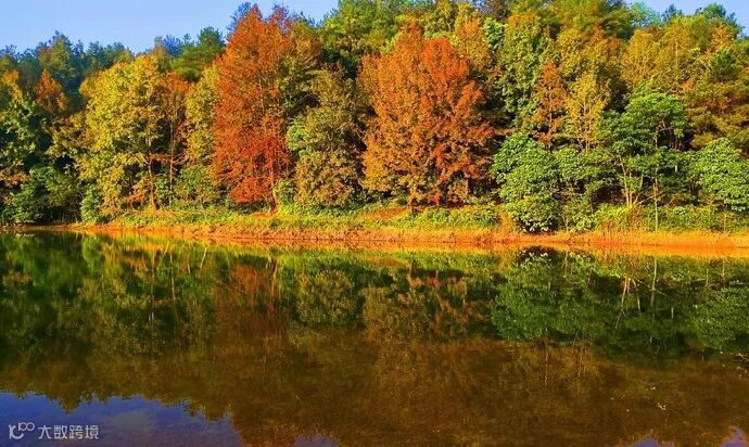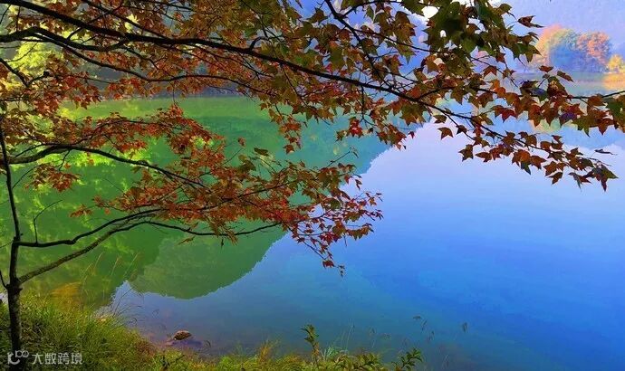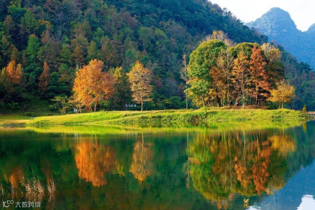 德保的秋冬,把湖水与天然枫叶林的绚丽和柔美