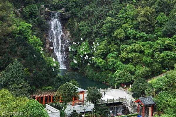 树林之间,郴州八景之一的王仙岭瀑布自40多米高的断崖直泻而下,色胶如练,声鸣似雷,气势磅礴