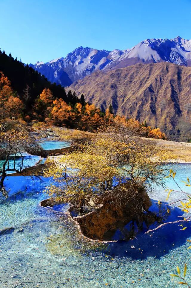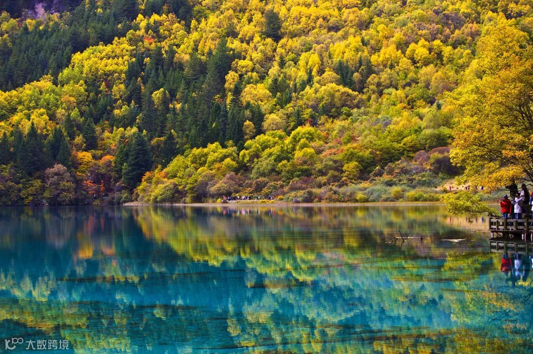 其一,有独霸九寨沟的倒影。每当晴日无风时,水面光滑如镜,一草一木都倒影在水中,倒影仿佛比实物还要真切。