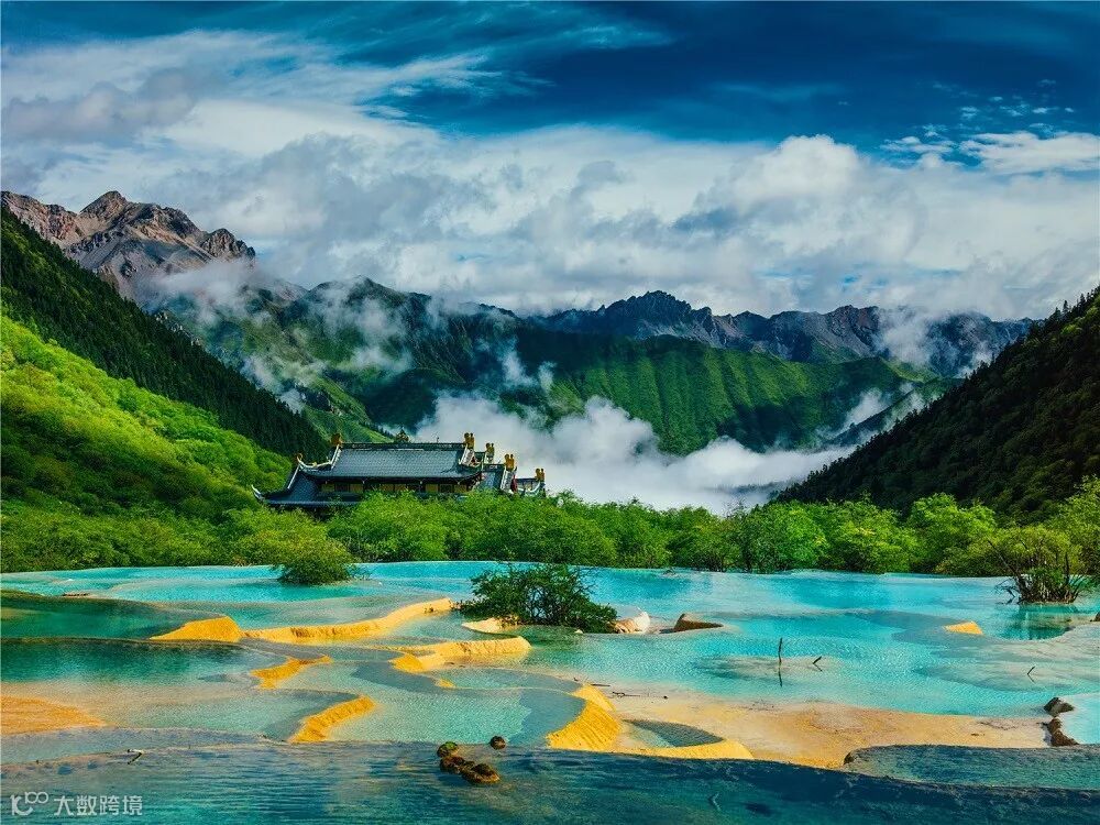 黄龙最有名的是黄龙沟,它位于雪山下的源流。沟内布满乳黄色岩石,远望好似婉蜒于密林幽谷中的黄龙,名即来源于此。历来被喻为“人间瑶池”、“中华象征”。