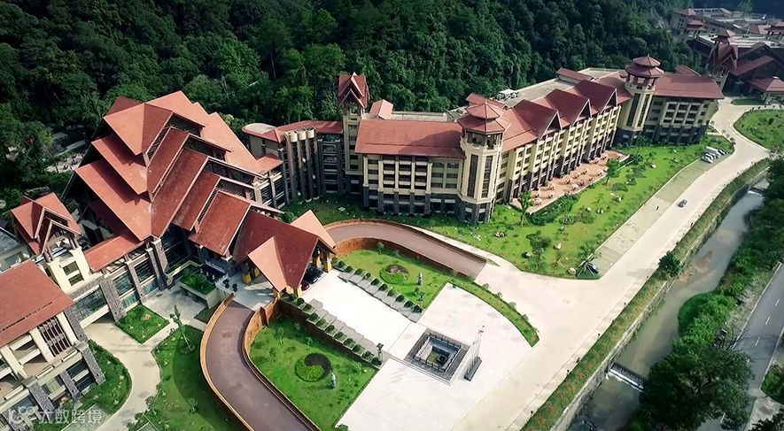 韶关经律论文化旅游小镇招提国际酒店 酒店是一个以禅修养生、休闲度假为经营理念的渡假型酒店,其建筑特色具有典型的东南亚风格。
