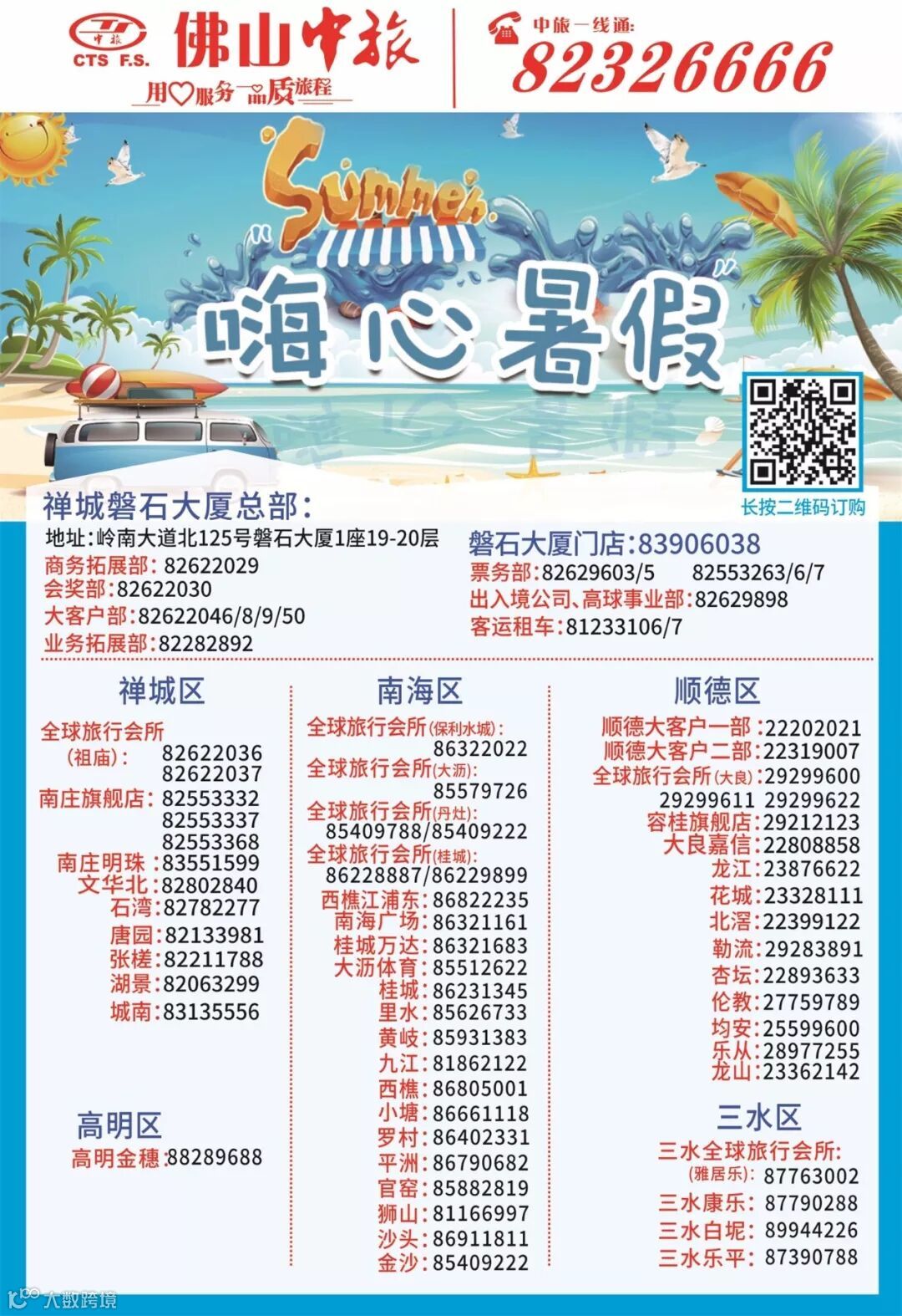 咨询或预定可联系您身边的佛山中旅营业部哦